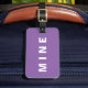 Funny purple luggage tag with 'Mine' written on it