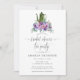 Purple flowers in a hand painted bouquet wedding bridal shower tea party invitation designed to be quickly and easily customised for your special day.