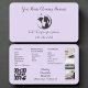 Professional business card designed for maid and house cleaning services using a polished purple color palette. The layout includes a QR code to share online information while keeping the design clean and easy to read. Suitable for cleaning companies, independent cleaners, and housekeeping services. Fully customizable text and QR destination with a print-ready layout.