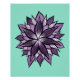 Mandala like floral poster with an abstract ink drawing of a purple flower with sharp petals over customisable light blue green background.