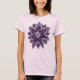 Mandala like floral shirt with an abstract ink drawing of a purple flower with sharp petals. This beautiful feminine tee design is great for spring.