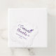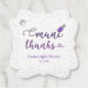 Cute, purple gradient mani thanks script typography with purple bottle of nail polish and cute heart in lettering. Rose gold glitter border on white background.