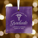 This custom purple medical school graduation Christmas ornament for a nurse or doctor features white typography under a medical caduceus for the class of 2024. Customise with your graduating year under the elegant calligraphy for a great personalised university graduate gift.