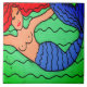 My funky abstract digital painting of a mermaid with a purple tail printed on ceramic tile