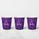 Purple Faux Metallic Elegant Monogram Birthday, Wedding, Bridal Shower or Bachelorette Party Cup. This Birthday Party Cup can be customised to include your initial and first name. Please contact the designer for customised matching items.