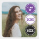 Announce your new graduate in bold style with this modern sticker featuring three circles to make your details stand out. Use your favourite senior picture in a vertical format. Perfect for adding to invite envelopes. Design available in a variety of school colours including red, orange, yellow, green, blue, purple, maroon, burnt orange, black and gold. You can customise the colours and pick whatever works best for you in the design tool. Coordinates with various invitation options as well.