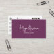 Modern minimalist business card design features a stylish solid PURPLE LAVENDER background with your name or company name in elegant signature script lettering. Fully customisable, allowing you to personalise the background colour, text, and logo to match your brand identity. The double-sided layout includes space for your full contact information, a QR code for quick access, and three social media icons (Facebook, Instagram, and TikTok) to enhance your online presence. Ideal for professionals looking to make a lasting impression. Perfect for Real Estate Agents, Accountants, Realtors, Brokers, Attorneys, Lawyers, Doctors, Corporate Professionals, Stylists, Architects, Engineers, Directors, Managers, Consultants, Designers, Teachers, Musicians, and all business professionals seeking a polished and professional brand image. Please contact the designer if you need to add or change social media icons.