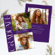 Purple Modern Elegant Three Photo Graduation Invitation