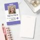 Purple Modern Employee Badge Template, Photo and name and all details are editable, perfect Nurse ID with barcode.