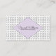 Simple and sophisticatedly chic Modern Polka Dots Business Card with a light lavender triangle shaped overlay and a delightful black and white patterned polka dot background. This classic and minimalist geometric profile card is easy to customise with your business details. This versatile pattern design is perfect for a variety of business types. Find more personalisation options by clicking Customise.