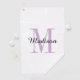 Custom printed golf towel personalised with your name and monogram initial or other custom text. Use the design tools to choose any background colour, edit fonts and colours or upload your own photos to create a unique one of a kind gift for your favourite golfer.