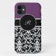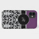 Custom monogram iPhone 5 cases with damask pattern and purple background colour you can change. Add your initials or your name.
