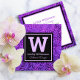 Purple monogram leaf pattern botanical bold modern square business card