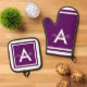 Purple Monogram Personalised Oven Mitt & Pot Holder Set