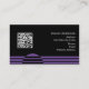 Purple monogram QR code abstract geometric business cards. It features geometric abstract circle and stripes and your monogram. On the back there is your QR code. Perfect for a photographer and other businesses.