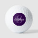 Ladies' golf balls featuring a custom white script name on a rich dark purple background with a light purple monogram. Perfect for adding a personal, stylish touch to your golf game.