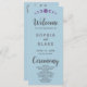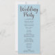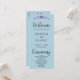 On the back of the program, you'll find a carefully arranged list of the wedding party, presented in classic black and grey text using a simple block font. The words "Welcome," "Ceremony," and "Wedding Party" are beautifully highlighted in a decorative script font, adding a touch of elegance and romance to the overall design.