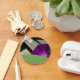 The image on the key chain is a pink-purple Morning Glory wildflower under a leaf, while other leaves cast shadows on a wooden fence.