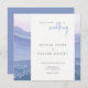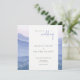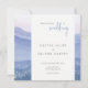 Wedding Invitation with Morning mountain landscape. Softness blue Nature landscape. Silhouettes of mountains and dandelion flowers. Watercolor painting background Wedding Invitation. Purple Mountains Collection.