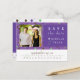 Save the date postcard with blue, green and brown circles and a purple background. Customise the postcard with your month and circle the day. You can see more designs on my website: www.darmanddesigns.com