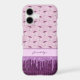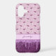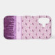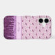 This phone case features a fanciful purple mushroom repeat pattern that almost looks like it's raining mushrooms. As if in a dream, the mushrooms rain down onto a darker purple harlequin pattern festooned in glittery looking drips of paint. Your monogram name gives your design a personalized look.
