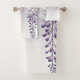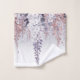 An enchanting scene of wisteria cascading from above, embellished with purple glittery, rose gold, and white tones against a clean white canvas, evoking a sense of wonder and magic.