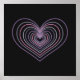 Glowing purple neon heart design on a deep, dark background. This modern poster adds a vibrant and slightly dreamy touch to bedrooms, living rooms, studios, or creative spaces. Part of a neon heart series available in red and orange for a coordinated interior look.