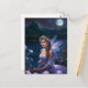 A fairy woman sitting in a flower patch, with a beautiful mountain and lake landscape background during a full moon night. This beautiful fairy art was created with a mix of my own digital drawing and AI art tools.