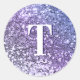 Purple Ombre Chunky Glitter Monogrammed Classic Round Sticker