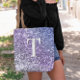Purple Ombre Chunky Glitter Monogrammed Tote Bag