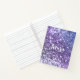 The background is a faux lavender, purple and periwinkle gradient glitter with sparkly spots or blurry bokeh.