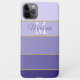 Personalise this with your name and initial to make a fun phone case that's uniquely yours. It features five different gradient colour block bands of purple, each one separated by a gold glitter stripe.