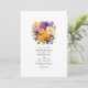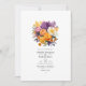 Purple, orange, and yellow floral wedding invitation. Ideal for any given theme or garden wedding. The QR code on the reverse directs to your wedding site where people can learn more and rsvp