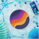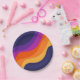 Retro style waves geometrical pattern illustration with purple, orange, yellow and blue stripes decoration on dark blue background for everybody who likes bright colours and groovy retro style decoration. It's easy to change the name and personalise it.