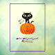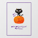 Very cute black kitty on the back of an orange pumpkin, looking at you with his huge eyes and with the message "Trick or Treat" and saying "Boo Meow" and family name in scary purple typography. Very cute and spooky for Halloween gift for family.