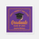 This modern purple and orange custom graduation party paper napkin features classy typography of your high school or college name for the class of 2024. Customise with your graduating year under the chic handwritten script and black grad cap for great personalised graduate decor.