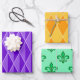 PURPLE ORANGE GREEN MARDI GRAS PATTERNS WRAPPING PAPER SHEET