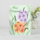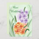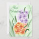 Easily personalise this pretty watercolor painting of purple and orange hyacinth flowers to customise your wedding invitations. A watercolor painting of hyacinths are superimposed on a soft watercolor background. The flowers themselves are also printed in a smaller version on the back. The text is easy to customise on the template forms. The painting is by CherylsArt.