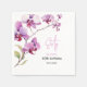 Elegant watercolor purple orchid branch in a white backdrop birthday napkin.
