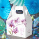 Elegant watercolor purple orchid branch in a white backdrop birthday thank you favour box.