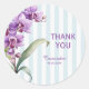 Purple Orchid Green Stripes Floral Thank You Classic Round Sticker