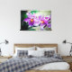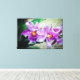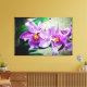 Colourful purple orchids lend a tropical air to home décor, on long lasting wrapped canvas print. Ingenious idea, for focal point in decorating any room!