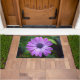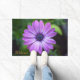 This custom doormat for the home or office features a close-up image of a purple Osteopermum bloom. "Welcome" is added in cursive lettering in a shade of orange to match the flower's stamen. The mat measures 24x36 and has a smooth felt front and nonslip latex back. It also has a reinforced edge to resist fraying, is both fade and mildew resistant, and cleans easily with a spray of water. Ideal for covered entryways such as porches, apartments, offices, condos, etc. Feel free to contact me through Zazzle if you have questions about this mat or would like help transferring this design to a different item. I'm happy to help to ensure the design fits correctly.