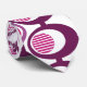 This necktie has a mid-century modern design of string of ovals in purple, with white ovals and circles made of lines inside them.