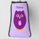 This owl design golf club head cover is an accessory that you slide over the head of a golf club for protection against knocks whilst sitting in your golf bag. Made out of polyester, cotton, and marine vinyl with a choice of different piping colours. You can customise this golf club head cover with any text. Should you require any help with customising then contact us through the message link on this page. Purple owl design golf club head cover.