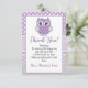 Purple OWL thank you card baby shower, birthday