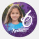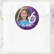 Add a bit of pizzazz to your 6th birthday party with custom photo stickers, featuring a purple spray paint design. Stickers are customisable where you can add your own photo and name.