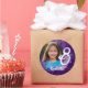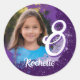 Add a bit of pizzazz to your 8th birthday party with custom photo stickers, featuring a purple spray paint design. Stickers are customisable where you can add your own photo and name.