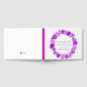 Modern wedding guest book featuring loose watercolor wash art of pansies in a wreath circular shape. Customise with your own couples names. Ideal to leave in a reception area for guests to share words of advice, a great keepsake memento from your marriage day. Part of the purple pansies wedding set collection. © Unique watercolor flower art painting and design by Sarah Trett. www.sarahtrett.com for www.mylittleedenweddings.com