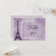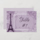 Number your reception tables with a Purple Parisian reception table card. Table card design features the Eiffel Tower, a scroll where you can detail the information of your bridal shower adorned with damask and postal stamp embellishments. Additional wedding stationery available with this design as well. Need help with customisation? Please contact me and I will work out the wording and details to fit this design to your satisfaction.